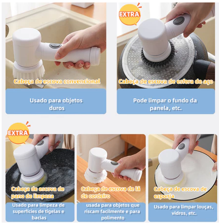 ✔️ 6 escovas intercambiáveis – Perfeita para qualquer tipo de superfície.